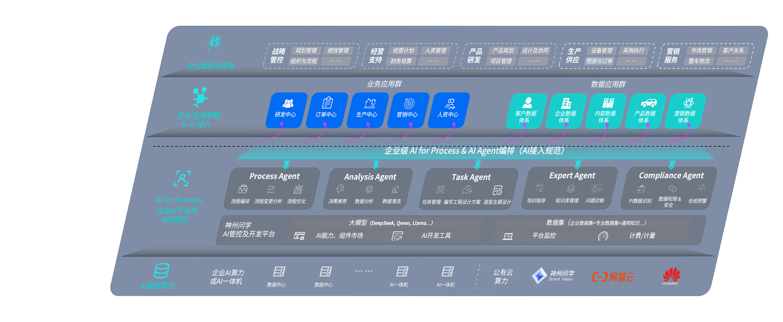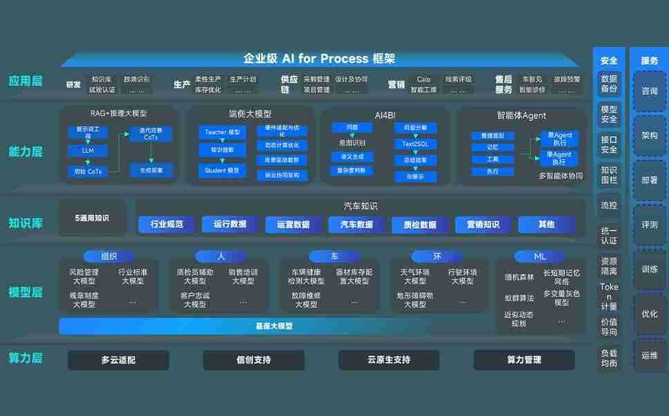 端到端的一站式AI工作空间深度融合了从企业战略规划到日常经营的全流程业务板块,,,,定向解决车企内部领域多、、、、部门多、、链条长、、场景碎片化等难题,,,,支持车企快速构建以AI为核心的生产力写作体系,,实现任务执行与AI能力的无缝集成与交互